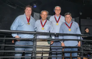 Usando um impecável terno e com seu habitual bom humor, Mário sai do famoso carro DeLorean DMC-12, do filme “De volta para o futuro”, para uma ‘self’ com os ex-presidentes Getúlio Vargas, João Goulart, Juscelino Kubitschek e Itamar Franco, e os ex-governadores Tancredo Neves, Leonel Brizola e o vice Darcy Ribeiro.