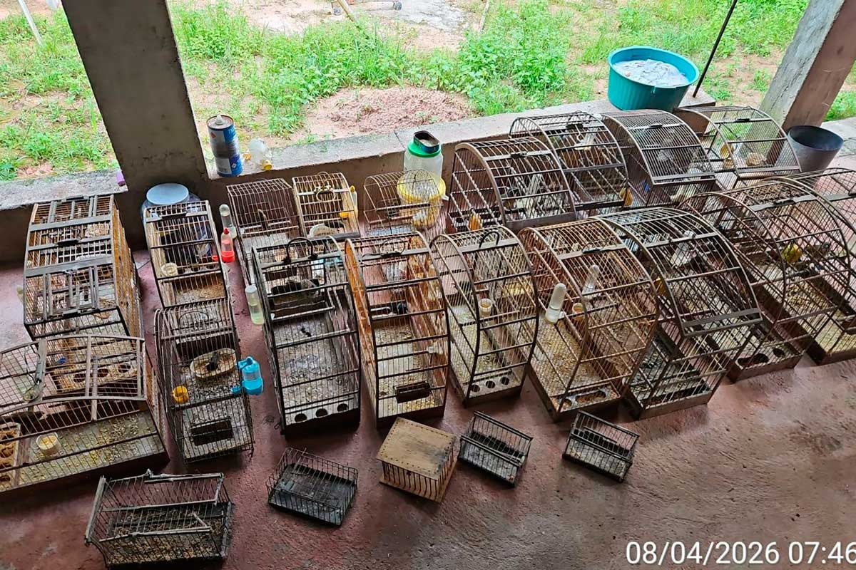 Três idosos foram presos em flagrante; aves eram confinadas sem condições mínimas de sobrevivência