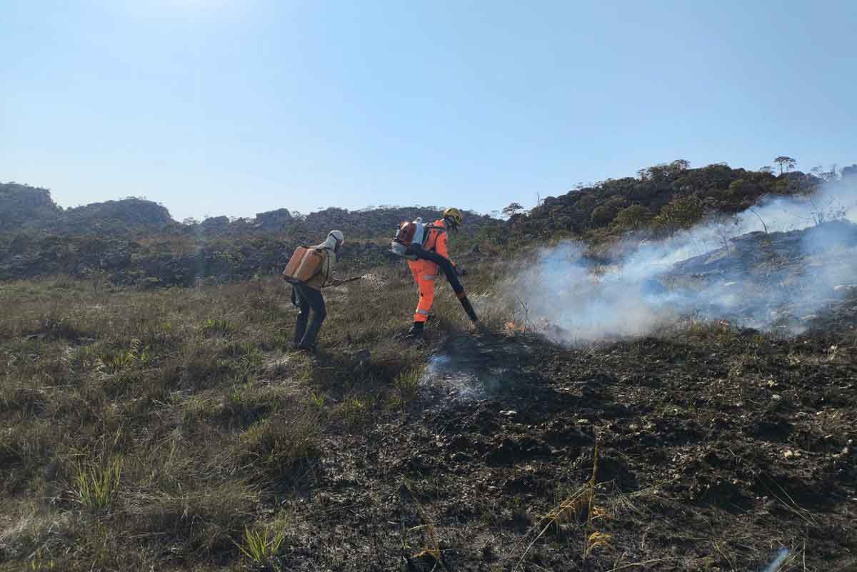 Durante a segunda-feira (6), quatro bombeiros e 15 brigadistas atuaram diretamente no controle das chamas. As atividades foram interrompidas à noite, por questões de segurança, e retomadas nas primeiras horas desta terça-feira. Um helicóptero foi utilizado para transportar e distribuir as equipes pelos pontos mais críticos.